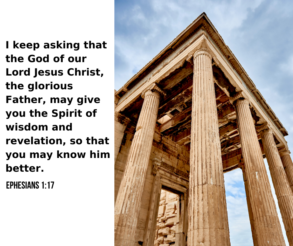 + expand15 For this reason, ever since I heard about your faith in the Lord Jesus and your love for all God’s people, 16 I have not stopped giving thanks for you, remembering you in my prayers. 17 I keep asking that the God of our Lord Jesus Christ, the glorious Father, may give you the Spirit of wisdom and revelation, so that you may know him better. 18 I pray that the eyes of your heart may be enlightened in order that you may know the hope to which he has called you, the riches of his glorious inheritance in his holy people, 19 and his incomparably great power for us who believe. That power is the same as the mighty strength 20 he exerted when he raised Christ from the dead and seated him at his right hand in the heavenly realms, 21 far above all rule and authority, power and dominion, and every name that is invoked, not only in the present age but also in the one to come. 22 And God placed all things under his feet and appointed him to be head over everything for the church, 23 which is his body, the fullness of him who fills everything in every way.